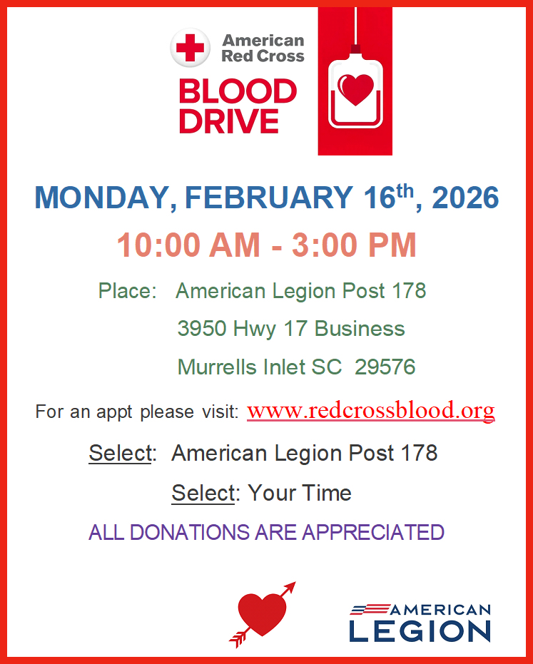 Since our charter, Murrells Inlet American Legion Post #178 has been welcoming VETERANS from all branches of our Armed Forces.